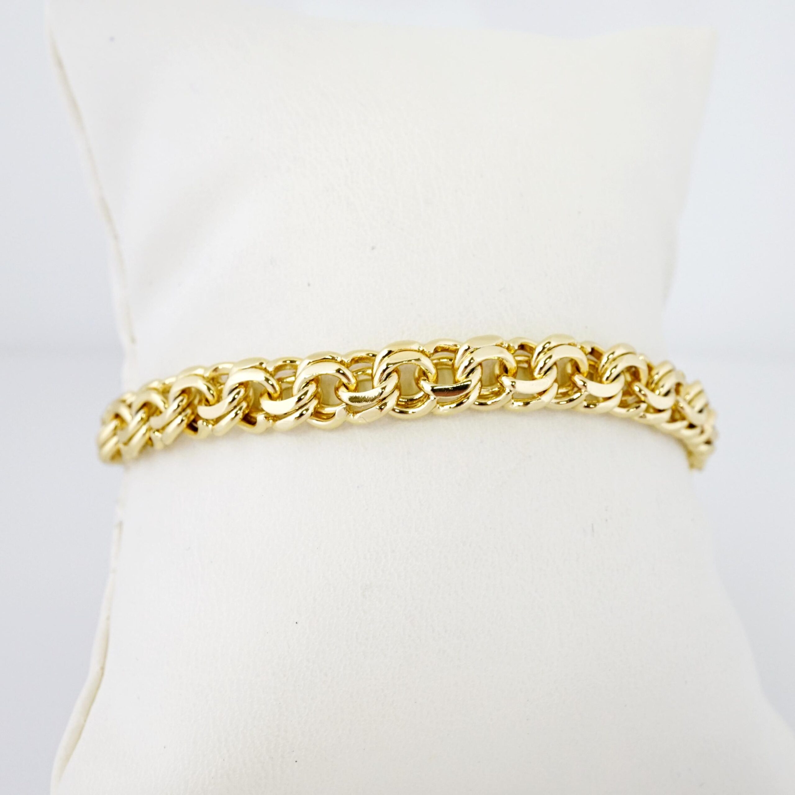 Adorne su muñeca con una pieza que irradia lujo y fortaleza. Nuestro Brazalete de Acero Bañado en Oro 14k combina la solidez y resistencia del acero inoxidable con el brillo opulento del oro de 14 quilates. Este impresionante brazalete ofrece una presencia sofisticada y duradera, siendo la elección ideal para quienes buscan la belleza del oro puro con una robustez excepcional y un valor inteligente, perfecto para realzar cualquier conjunto con un toque de distinción.