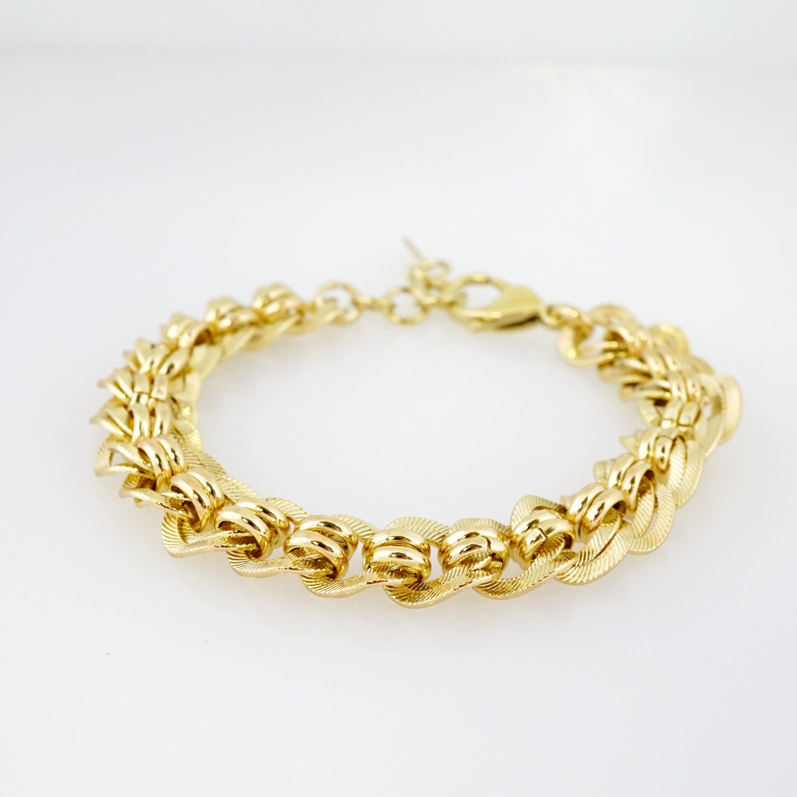 Adorne su muñeca con una pieza que irradia lujo y fortaleza. Nuestro Brazalete de Acero Bañado en Oro 14k combina la solidez y resistencia del acero inoxidable con el brillo opulento del oro de 14 quilates. Este impresionante brazalete ofrece una presencia sofisticada y duradera, siendo la elección ideal para quienes buscan la belleza del oro puro con una robustez excepcional y un valor inteligente, perfecto para realzar cualquier conjunto con un toque de distinción.