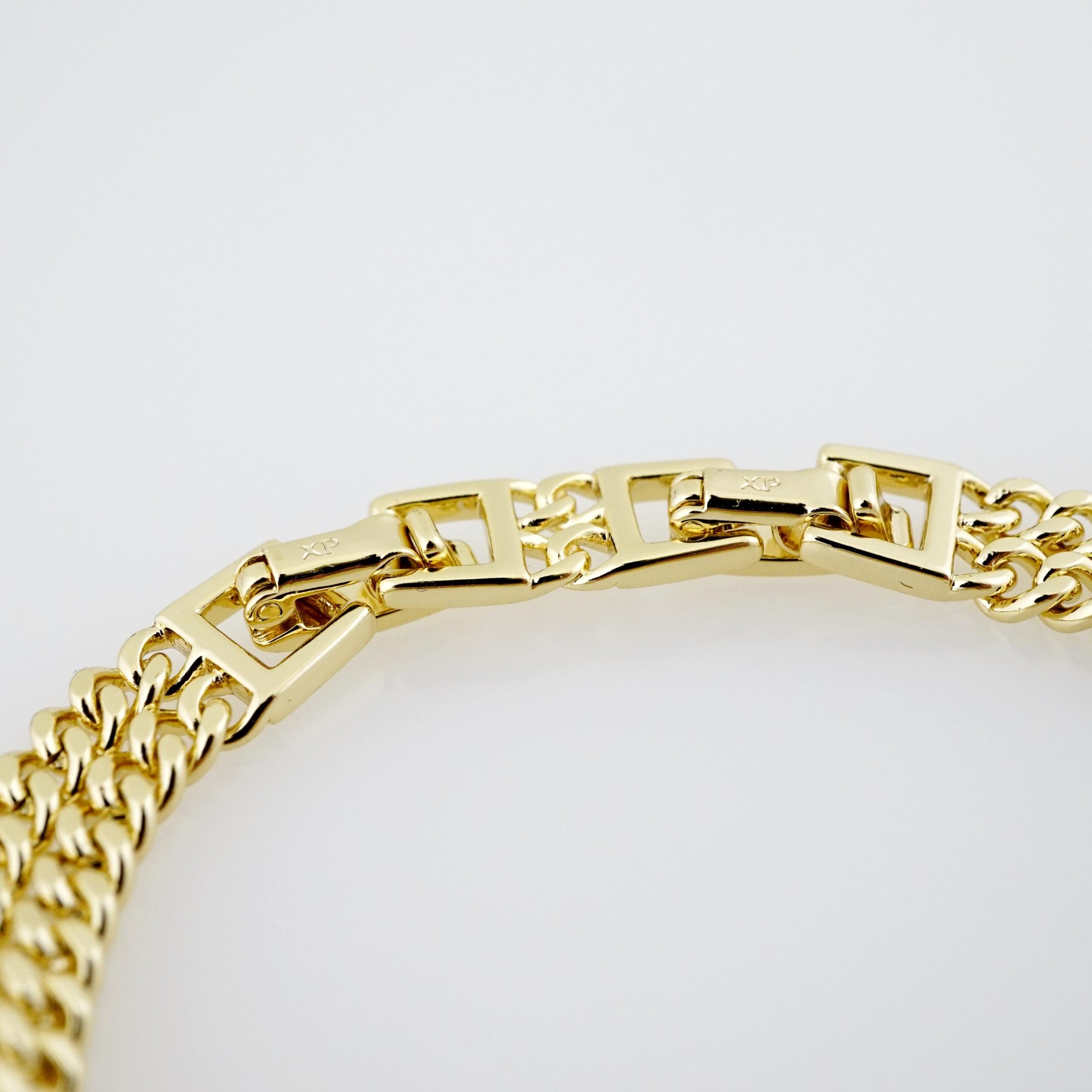 Adorne su muñeca con una pieza que irradia lujo y fortaleza. Nuestro Brazalete de Acero Bañado en Oro 14k combina la solidez y resistencia del acero inoxidable con el brillo opulento del oro de 14 quilates. Este impresionante brazalete ofrece una presencia sofisticada y duradera, siendo la elección ideal para quienes buscan la belleza del oro puro con una robustez excepcional y un valor inteligente, perfecto para realzar cualquier conjunto con un toque de distinción.