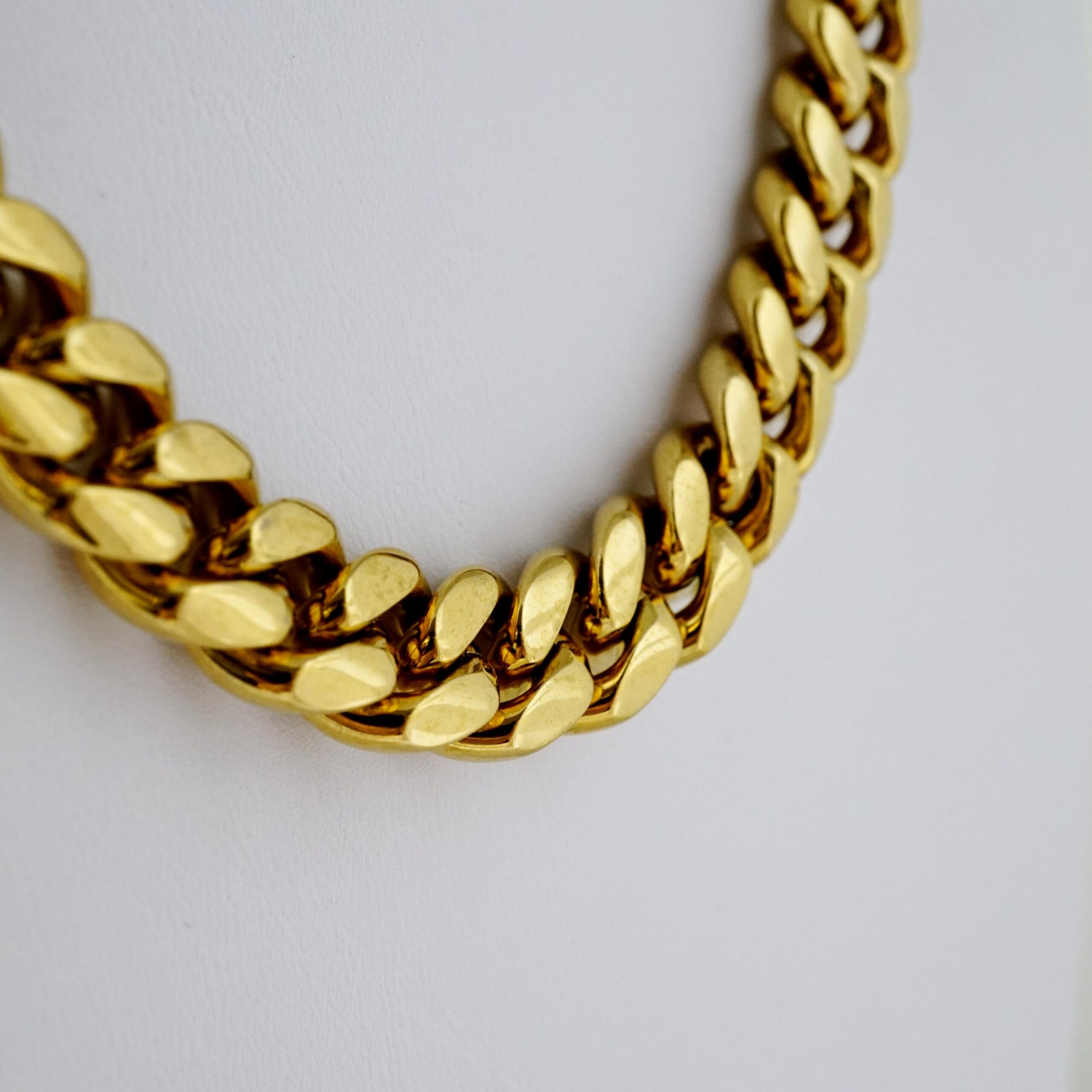 Descubre nuestra cadena de hombre en acero bañada en oro 14k: resistente, elegante y perfecta para uso diario. Un accesorio moderno con brillo duradero y estilo premium