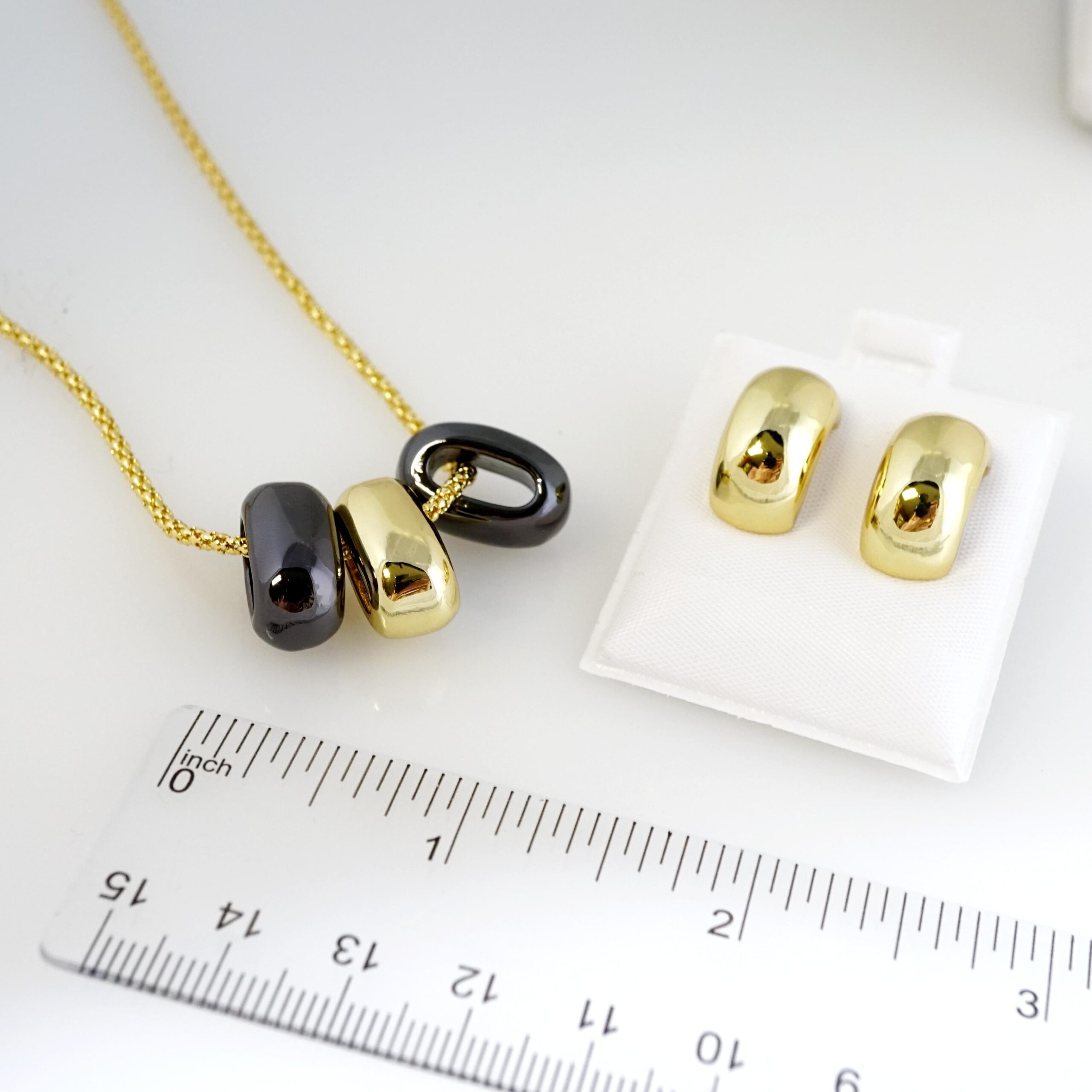 Descubra el Set de Acero Inoxidable Bañado en Oro 14k. Una colección de joyas elegante y duradera que combina el lujo del oro con la resistencia del acero. ¡Perfecta para su estilo diario!